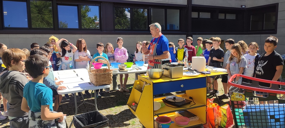 Previo a esto, en todos los grupos llevaremos a cabo diferentes actividades en el centro: preparar los dorsales y las pancartas, trabajar las Unidades Didácticas, ensayar la coreografía que ha preparado el alumnado de 5º de Primaria y marcar dónde se encuentra cada día la Korrika en el gran mapa que hemos colocado en la entrada principal. También haremos fotos en el photocall que hemos preparado. Por último, colocaremos un monitor interactivo móvil, también en la entrada, para poder disfrutar cada día de la Korrika en directo. Os animamos a las familias a entrar a las tardes y haceros fotos en grupo.