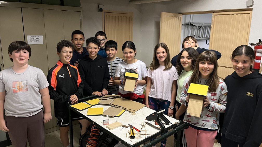 Los y las alumnas de Haur Hezkuntza con la ayuda de LH6, han preparado unos preciosos nidos para los pájaros que se acercarán en primavera a los alrededores de Hegoalde.